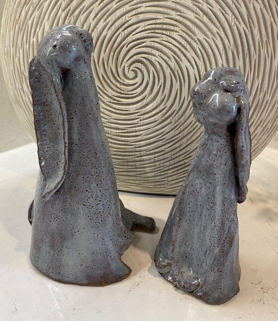 Hi, my name is Michele, and I live in the beautiful community of Stratham. I've been exploring different techniques over winter and never tired of opening my kiln to see how different clay bodies and glazes turn out. I'm collaborating with my Danish husband, Jorgen, to create birdbaths this year. Jorgen has worked as a boilermaker/welder for over 50 years, and his work is unique, and we hope you enjoy it.
