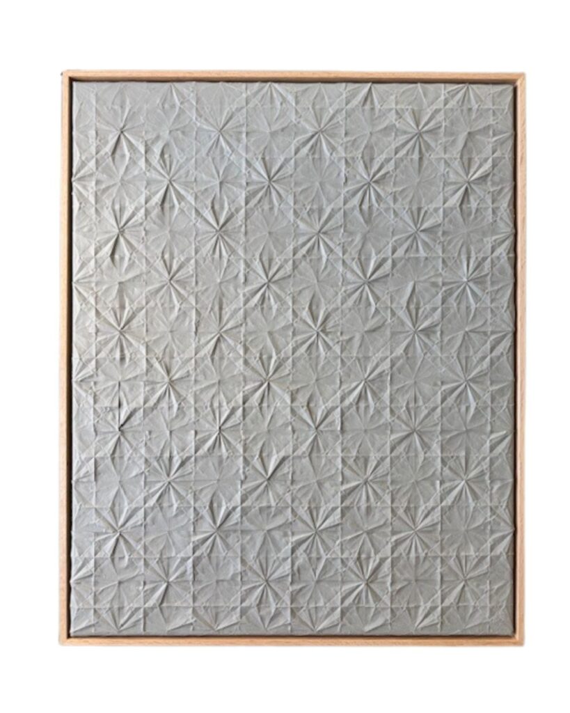 Medium: Unfolded origami cranes on canvas