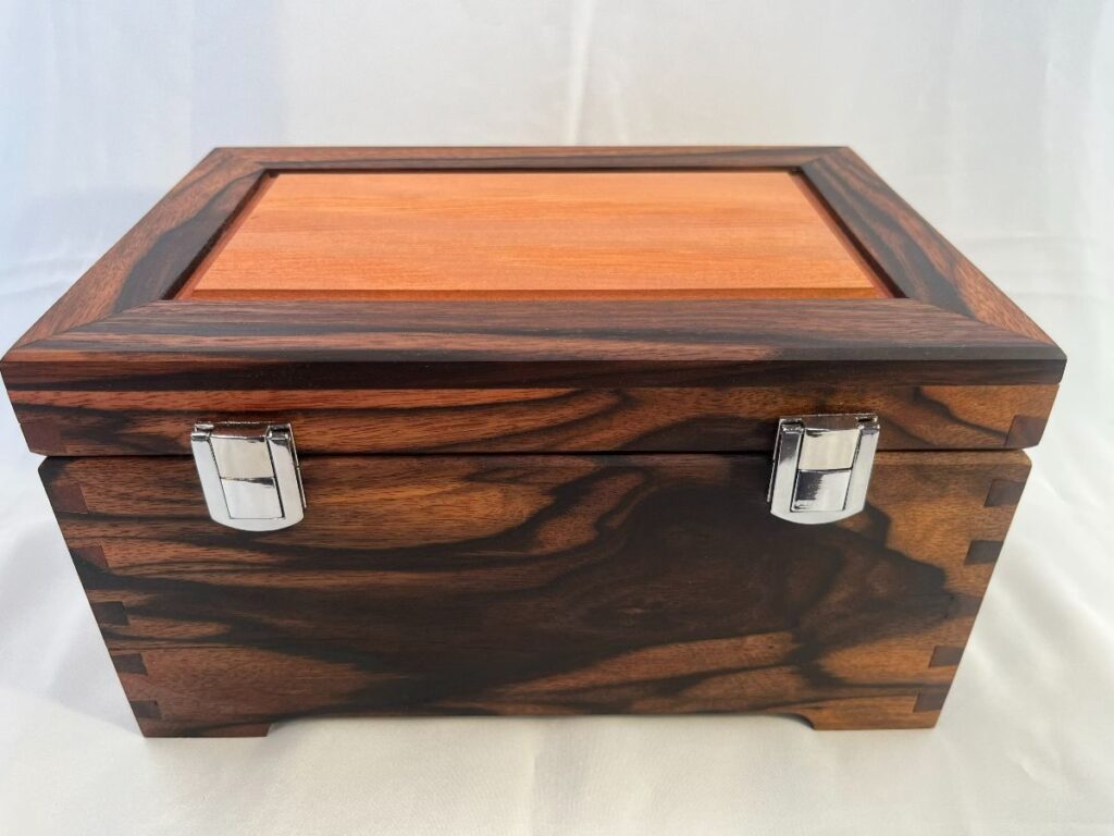 David Hatch, owner of Swan Jewellery Boxes, is a retired business executive who specialises in making handcrafted solid timber boxes from his extensive range of high value native and exotic timbers. Dave's boxes are built to an heirloom standard and range in size from small watch/desktop boxes to the large jewellery boxes with liftout trays. In addition to the quality joinery techniques including dovetail joints, waterproof glues, wool felt and brass/chrome hardware, Dave takes great care in selecting specific, unique feature pieces of solid timber for the box lids. Each box is finished with multiple passes of sanding and durable timber waxes or oils.