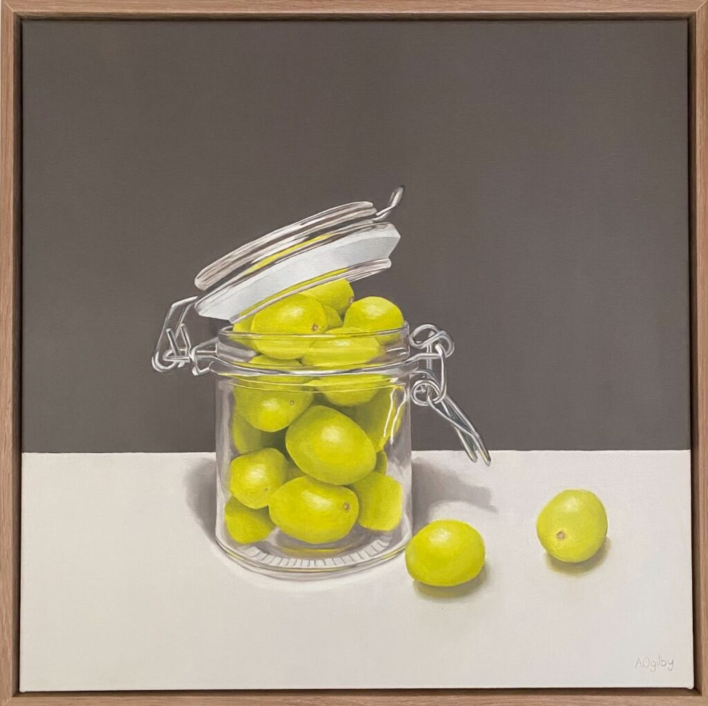 Amanda Ogilby is a Margaret River artist known for her atmospheric and refined still life oil paintings. Her work balances a modern aesthetic with traditional techniques, showcasing a strong foundation in representational realism and a sensitivity to light, tone, and detail. Amanda’s artwork may include carefully chosen homewares, florals, and seasonal produce to create quietly evocative compositions with a sense of calm and presence.