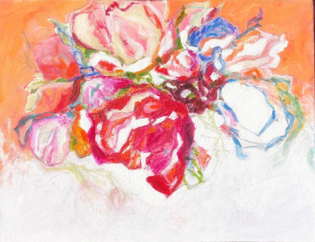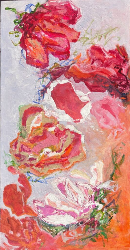 Felicia’s abstract paintings explore the tension between beauty and harshness, using bold strokes, layered textures, and expressive colour to evoke reflection and connection. Her compositions unfold like visual poetry — vibrant blooms dissolving into softened forms, echoing life’s rhythm of growth and decay.