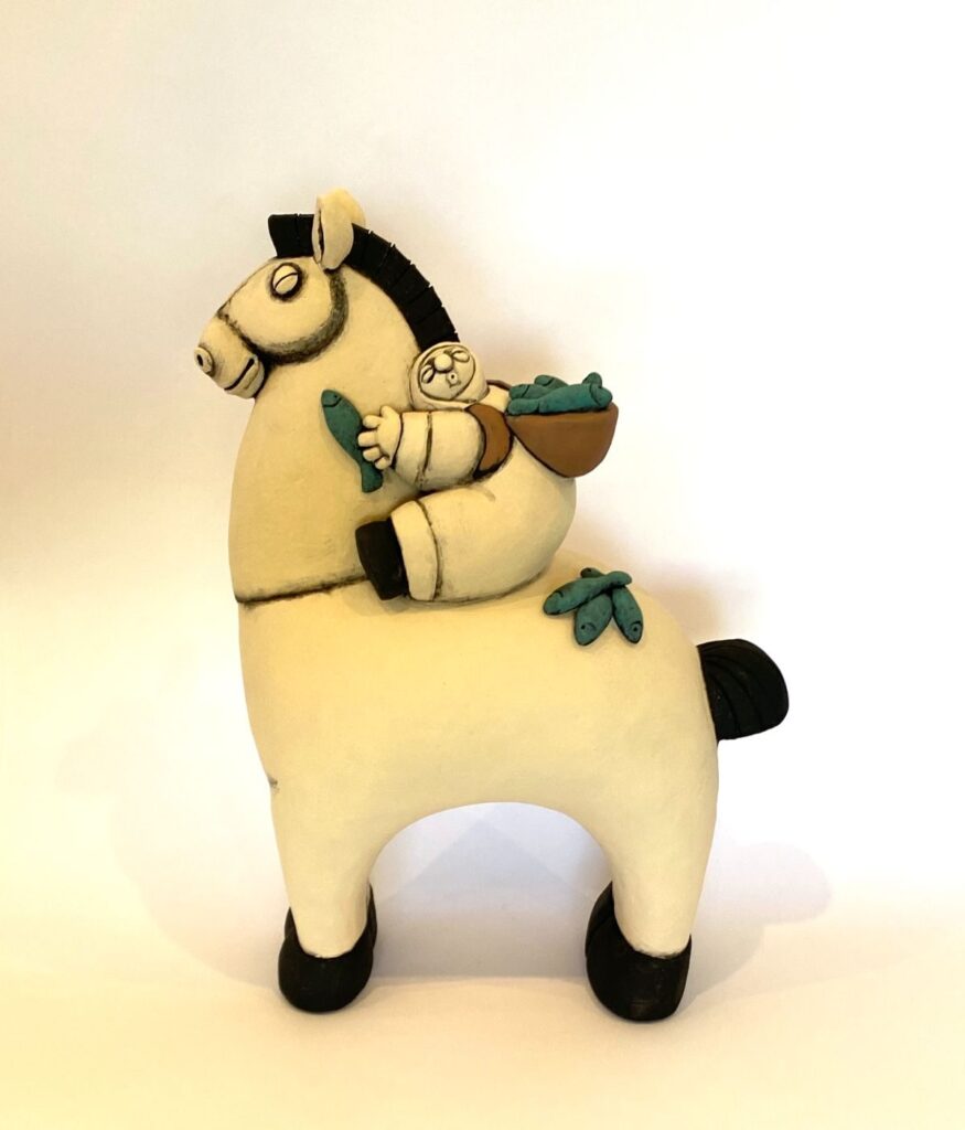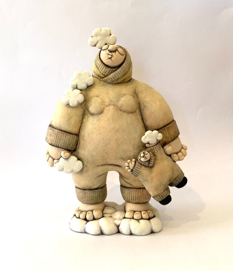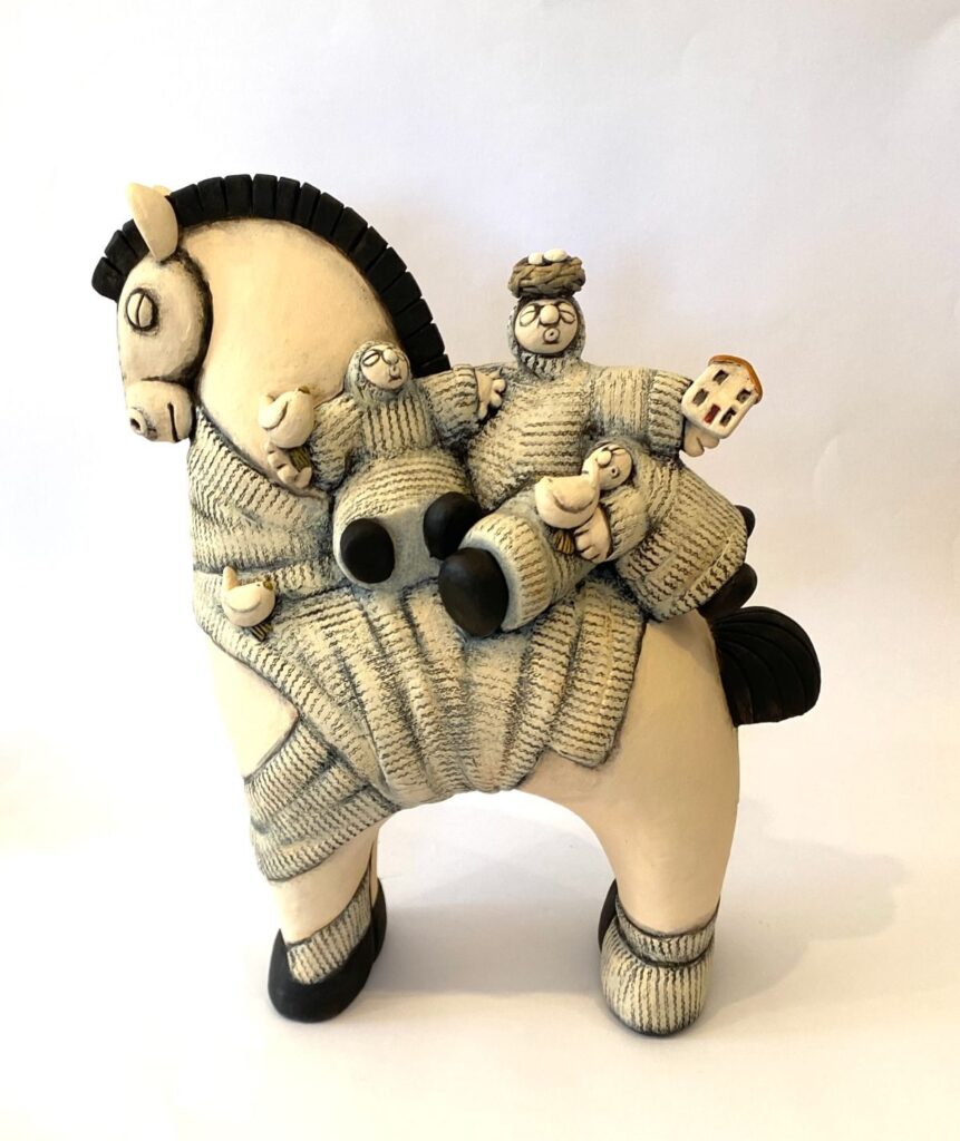 Lesley uses a variety of hand-building techniques to form her ceramic sculptures. The narrative in her work reflects personal life events. Lesley draws on the experience of migration and raising a family to create her pieces.