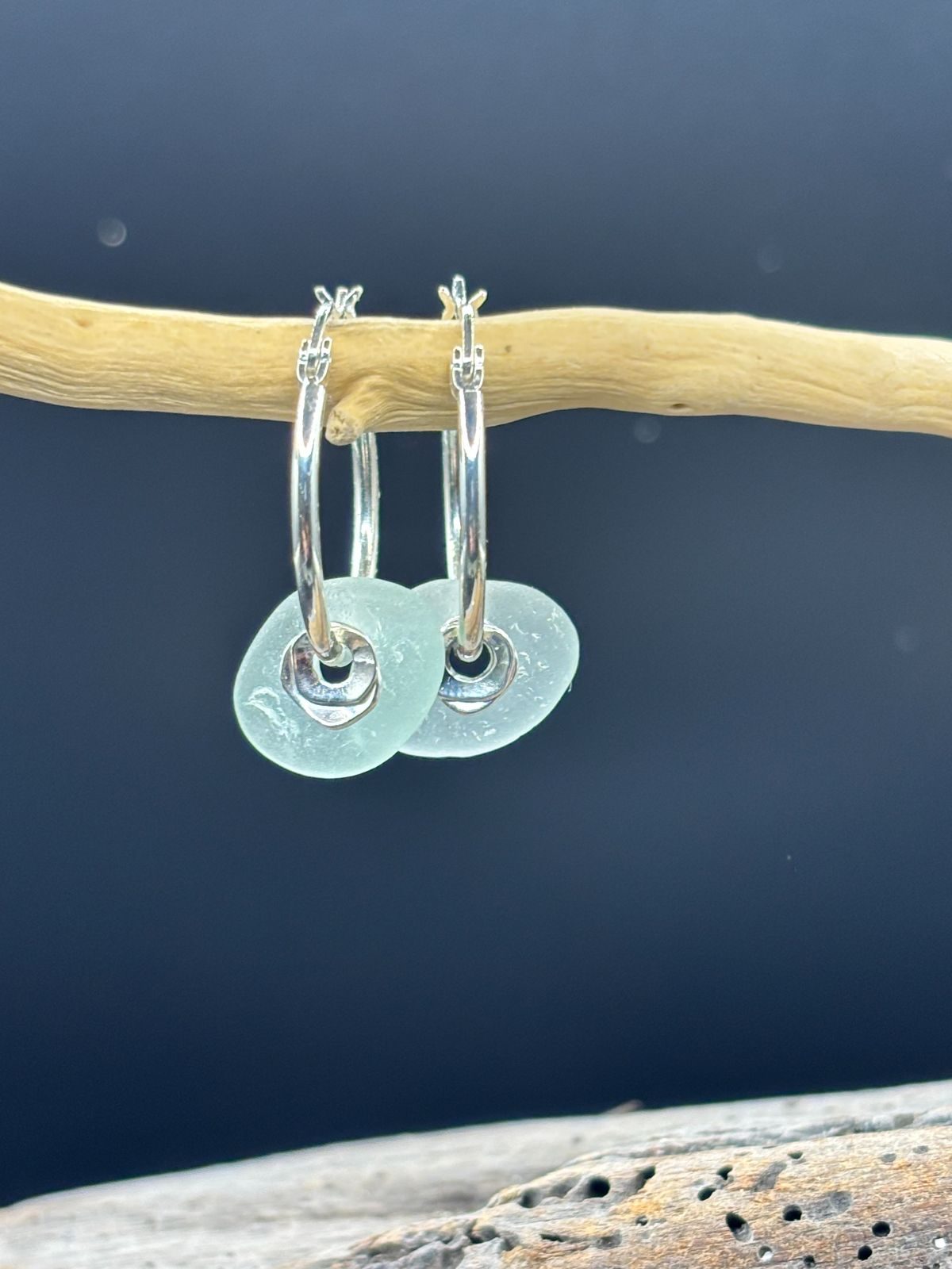 Sterling Silver, sea foam sea glass and freshwater pearl.